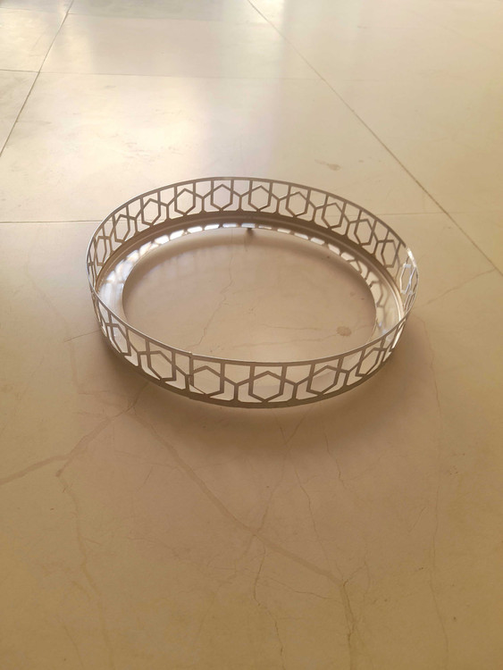 آیینه و ام دی اف خام یا پلکسی یا پی وی سی میتونید داخل سینی برای کف کار قرار بدید